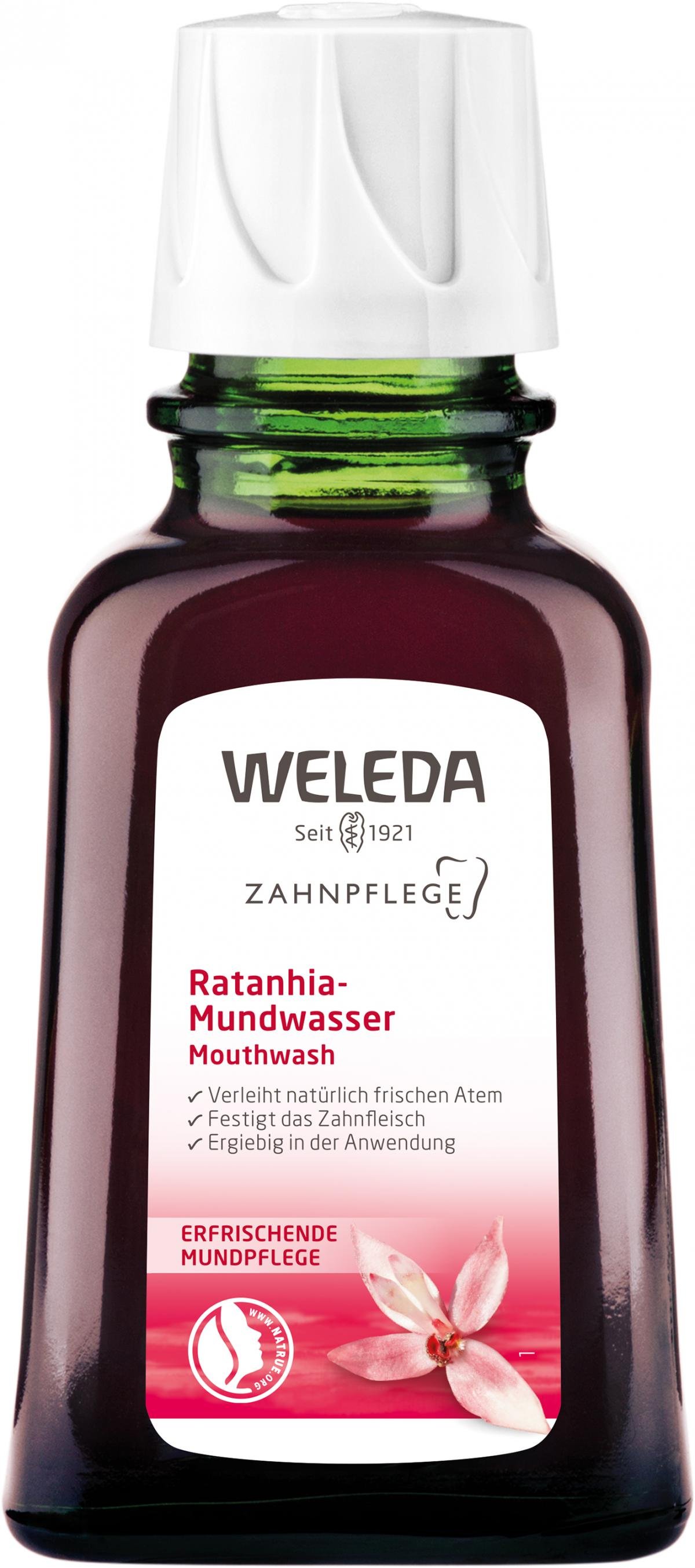 Das Ratanhia Mundwasser regt durch ätherische Öle und mineralische Substanzen die natürlichen Funktionen der Mundschleimhaut an, hält die Mundflora im Gleichgewicht und sorgt für frischen Atem. Auszüge aus der peruanischen Ratanhiapflanze und Myrrhe kräftigen das Zahnfleisch und die Mundschleimhaut und helfen so, Irritationen vorzubeugen. Das Ratanhia Mundwasser ist ein Konzentrat und daher sehr ergiebig.