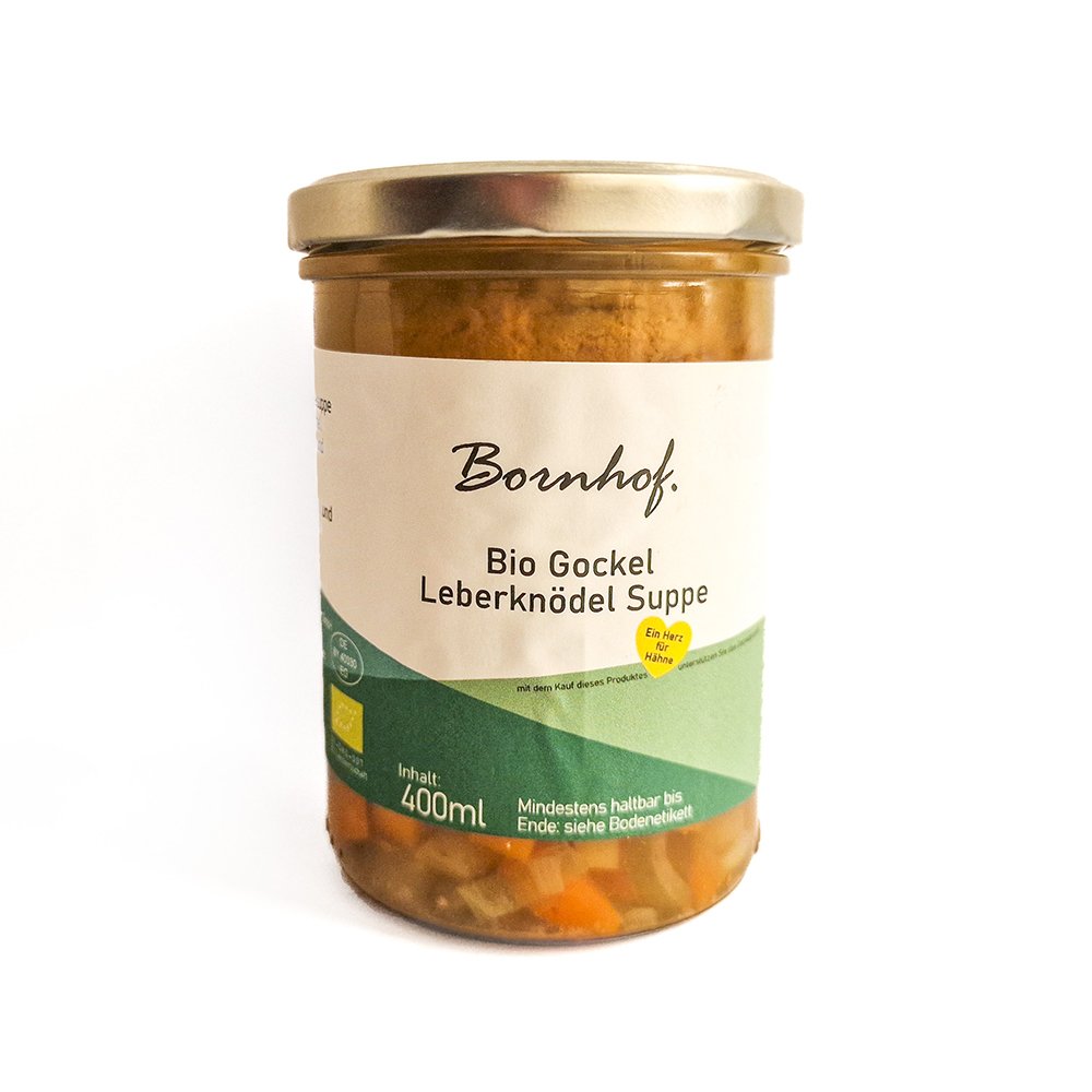 Die Bruderhähne der Legehennen vom Bornhof werden mit aufgezogen und später zu den besonderen Produkten verarbeitet. Durch den Kauf unterstützen Sie ein kleines, frauengeführtes Landwirtschaftsunternehmen und erhalten die regionalen Bio-Flächen.