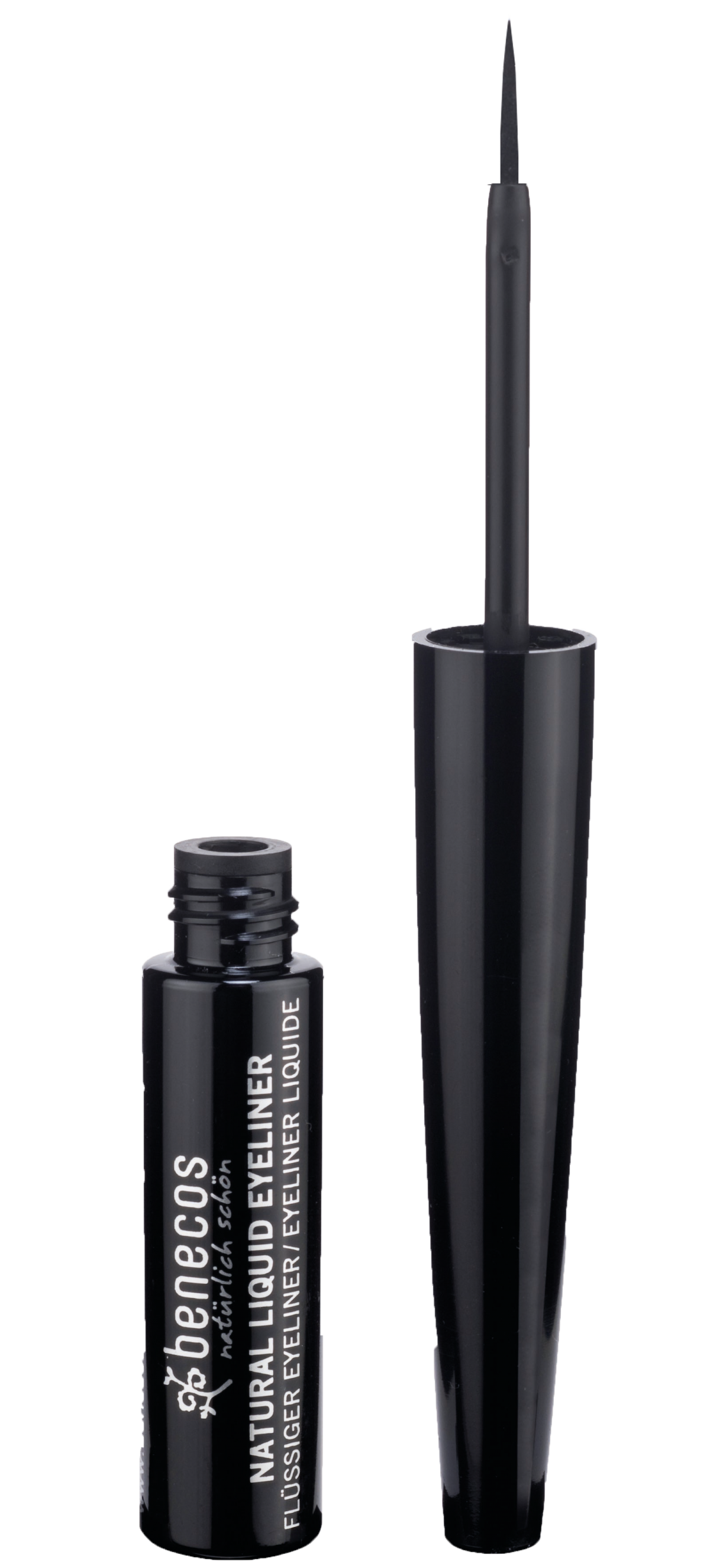 Mit dem tiefschwarzen, flüssigen benecos Eyeliner gelingt ein präziser Lidstrich ganz leicht. Dank der feinen Spitze lassen sich von Cat Eyes über Cleopatra- bis hin zu 60s-Wings die verschiedensten Augen-Make-up-Looks kreieren. Die sanfte Textur mit Bio-Bienenwachs, Bio-Jojobaöl, Sonnenblumenöl sowie Vitamin E pflegt die Augenpartie.
