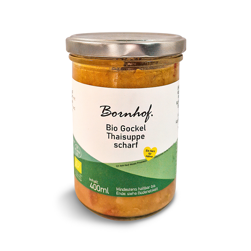 Die Bruderhähne der Legehennen vom Bornhof werden mit aufgezogen und später zu den besonderen Produkten verarbeitet. Durch den Kauf unterstützen Sie ein kleines, frauengeführtes Landwirtschaftsunternehmen und erhalten die regionalen Bio-Flächen.