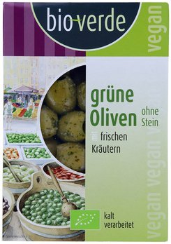 Die aus Griechenland stammenden Grünen Oliven sind bereits entsteint und werden nach Ihrem Salzbad bei bio-verde veredelt und mit frischen Kräutern und einer Spur Öl mariniert.