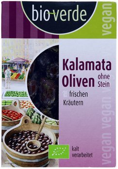 Schwarze Kalamata-Oliven ohne Stein 150 g mariniert mit frischen Kräutern