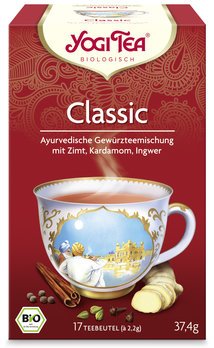 Der Gewürz-Tee Yogi Tea® Classic Bio ist eine wunderbare Mischung aus süßem Zimt, Kardamom, würzigem Ingwer, Nelken und Pfeffer und inspirierte Generationen von Yogis sowie die Marke YOGI TEA® und legte den Grundstein für die Vielfalt unserer ayurvedischen Teemischungen. Am besten gesüßt und mit Milch oder einer veganen Milchvariante genießen.