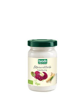 Für den biologischen Tafelmeerrettich von Byodo werden handverlesene Bio-Meerrettichwurzeln aus Bayern verwendet, was auch mit dem bayerischen Herkunftssiegel auf dem Etikett ausgelobt wird. Der Meerrettich wird frisch verarbeitet und schmeckt daher typisch würzig-scharf. Darüber hinaus besticht er nicht nur pur zu Lachs und Schinken aufs Brot, sondern auch bei der Verwendung in Suppen und Saucen.