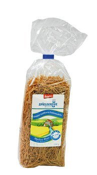 Für die Dinkel-Vollkorn-Fadennudeln wird bester demeter-Dinkel verwendet. In der Spielberger Mühle wird das Getreide in mehreren Schritten zu einem vollwertigen Mehl vermahlen, das noch alle wertvollen Bestandteile des Korns enthält. Anschließend wird das Vollkornmehl handwerklich zu Fadennudeln verarbeitet. Diese Vollkornnudeln schmecken Dank dem Dinkel fein nussig und eignen sich perfekt als Suppeneinlage. Sie schmecken aber auch sehr lecker als Woknudeln in asiatischen Gerichten.