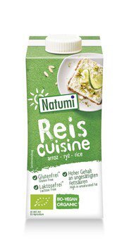 Natumi Reis Cuisine, pflanzliche "Sahne" auf Reisbasis. Lecker sahnig im Geschmack, extra crmig und vielseitig. Zum Kochen, Bakcen und Verfeinern, für Desserts und Eis.