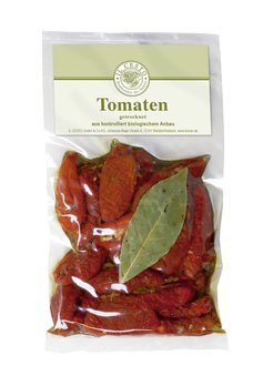 Tomaten getrocknet* (46,5%) (Wasser (39,2%), Meersalz), Rapsöl* (13,5%) (kaltgepresst), Knoblauch*, Oregano*
