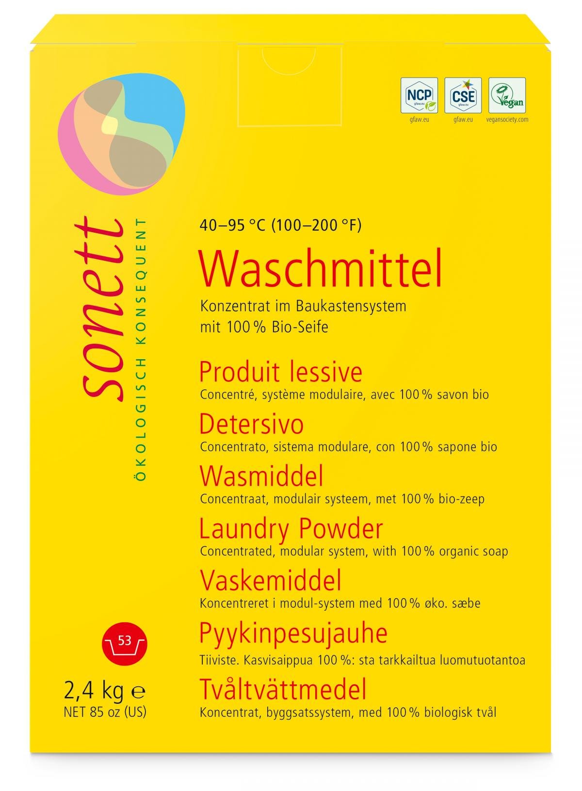 • Nicht geeignet für empfindliche Feinwäsche, Wolle und Seide. Hierfür empfehlen wir Sonett Olivenwaschmittel für Wolle und Seide.