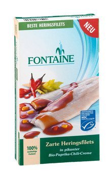 Für den Atlantischen Hering ist der Norden des FAO Fanggebiets 27 ein idealer Lebensraum. Die dort praktizierte Fischerei mit Ringwadennetzen und pelagischen Schleppnetzen ist vom Marine Stewardship Council (MSC™) als nachhaltig anerkannt. Fontaine Heringsprodukte zeichnen sich durch eine verantwortungsvolle Verarbeitung und Verfeinerung mit besten Bio-Zutaten aus.