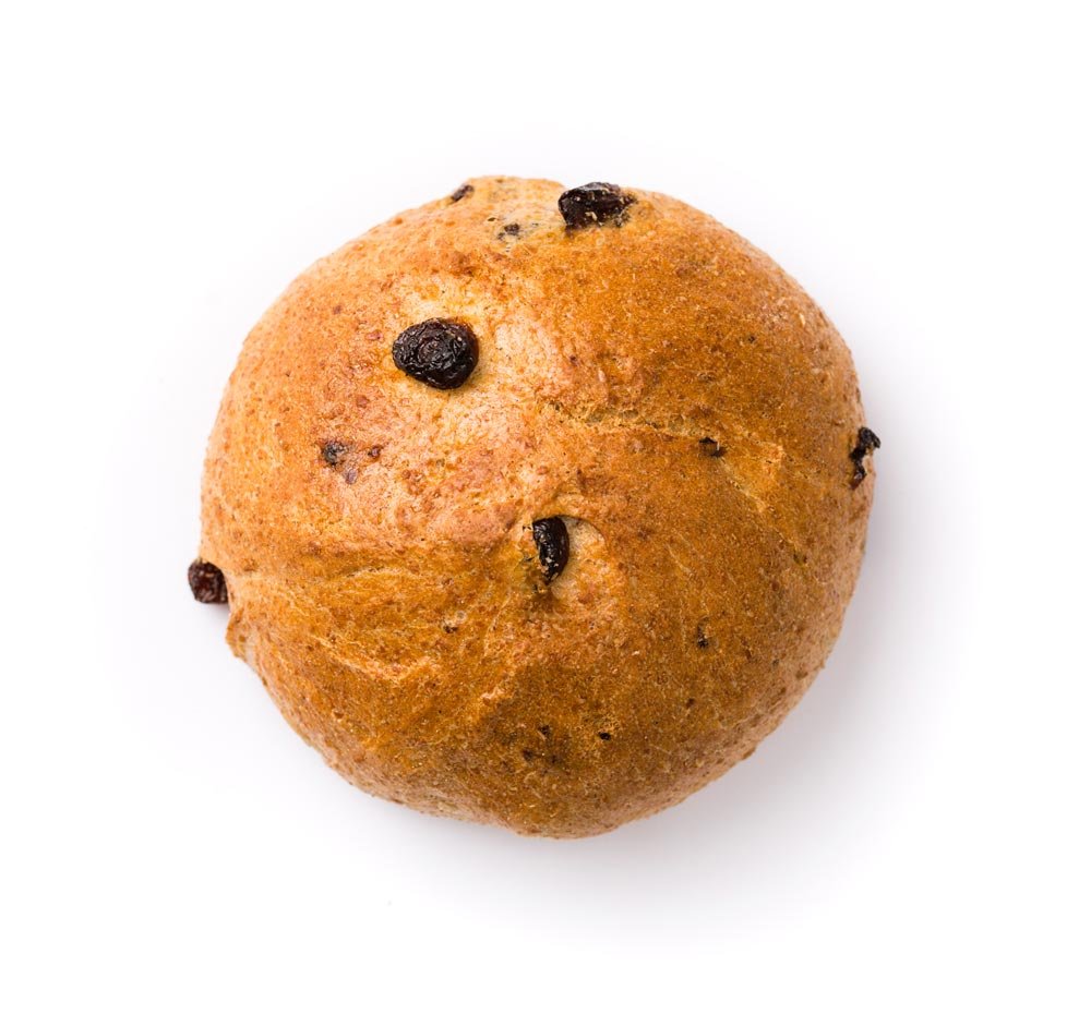 ein leckeres Brötchen aus Dinkelhefeteig. Frische Sultaninen