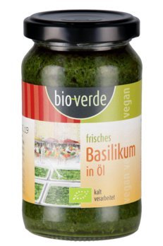 Frisches Basilikum in Öl ist ein vielseitig einsetzbares Würzmittel für Saucen, Suppen, Gemüse, Teigwaren, sowie Fleisch- und Fischgerichte
