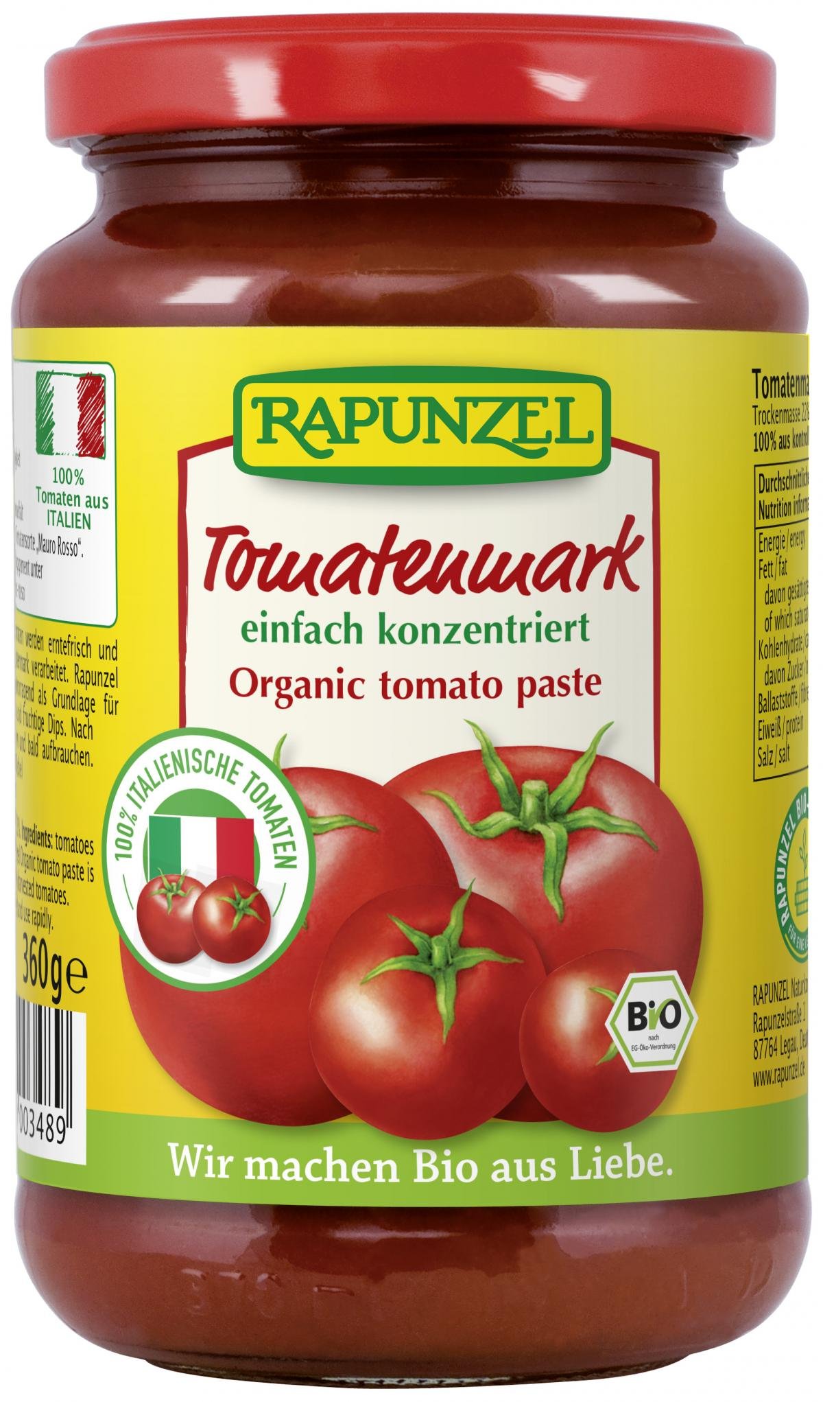 Sonnengereifte Tomaten werden in Italien erntefrisch und schonend verarbeitet. So bleiben das besonders fruchtige Aroma und die wertvollen Inhaltsstoffe weitestgehend erhalten. Trockenmasse: 22% - einfach konzentriert. Die in diesem Tomatenmark enthaltenen Tomaten sind zu 100% aus Italien. Rapunzel unterstützt die Züchtung und den Erhalt von samenfestem Bio-Saatgut, z.B. auch für die Tomatensorte 'Mauro Rosso'.