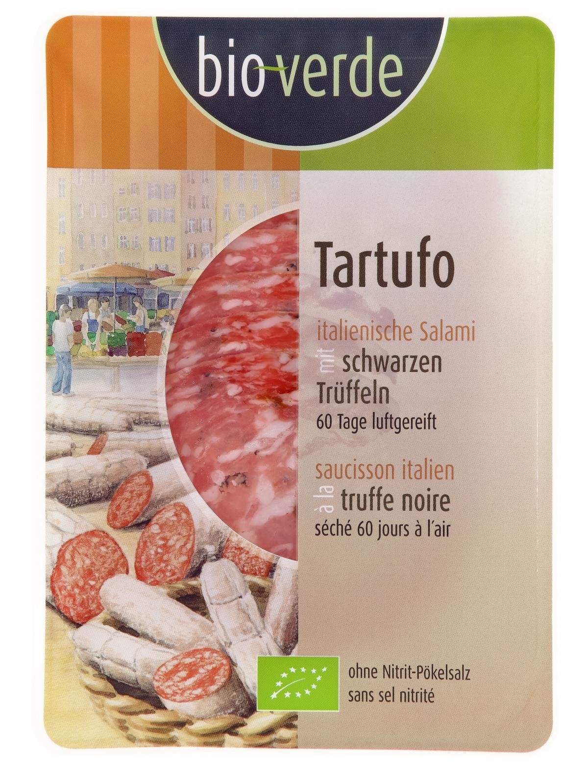 Eine besonders edle Variante der Italienischen Wurstspezialitäten ist die Trüffelsalami, zur Veredelung werden ausschließlich echte schwarze Trüffel aus zertifiziertem Wildwuchs verwendet, bereits beim Öffnen begegnet einem der unverkennbare feine Trüffelgeschmack.