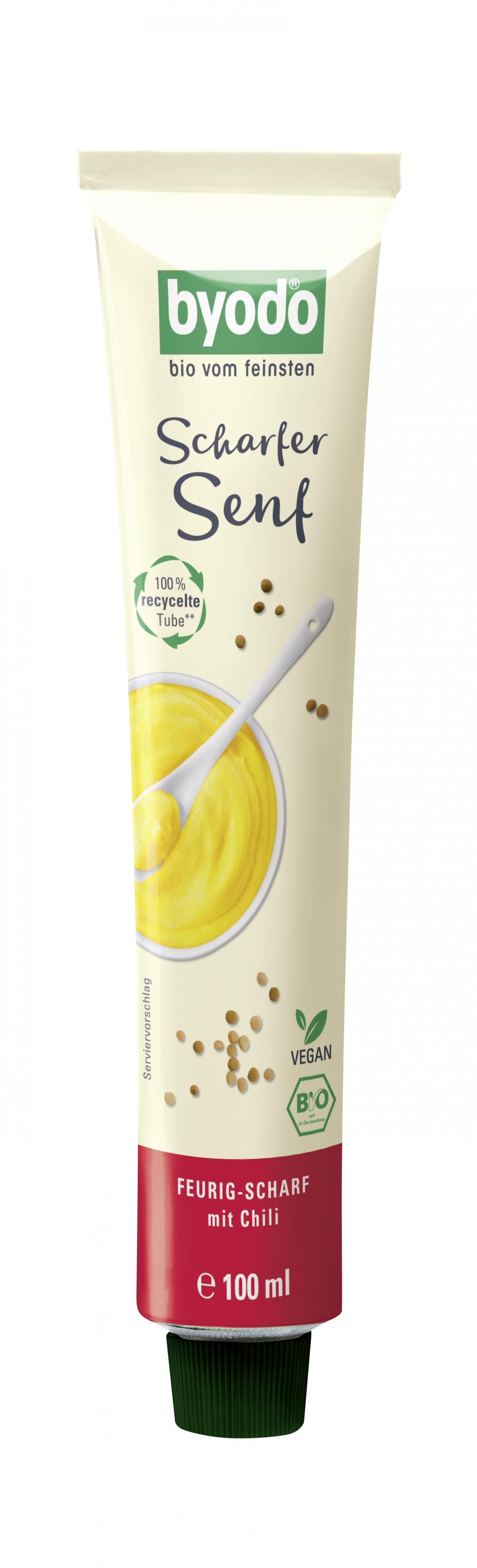 Der Scharfe Senf von Byodo ist wunderbar cremig und hält, was sein Name verspricht. Feinste braune Senfsaat, sowie eine Prise Chili, geben ihm seine feurige und unverfälschte Schärfe - für biologischen Senfgenuss vom Feinsten.