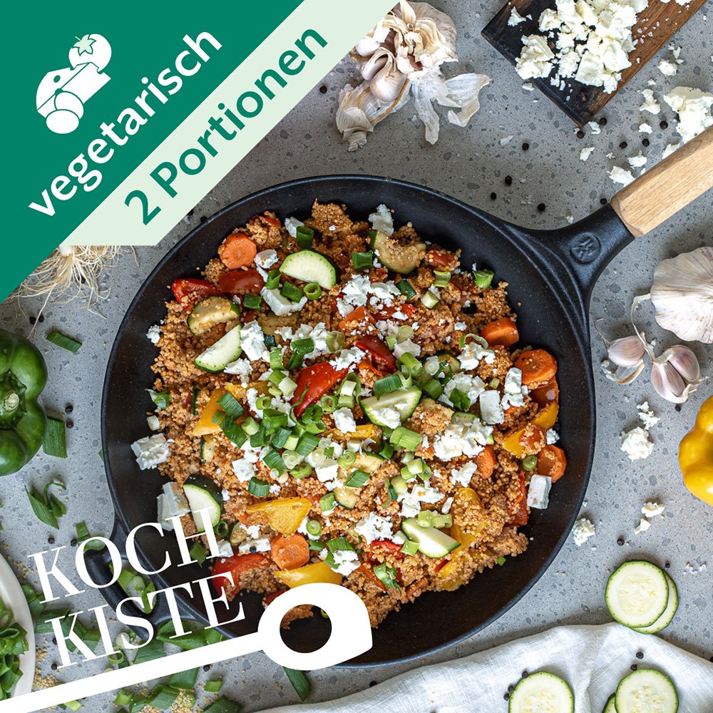 Tausendundein Couscous-Körnchen lockt sie mit unserem arabischen Baharat-Gewürz ins Morgenland. Das müssen Sie einmal probiert haben! Die klassischen Couscous-Gefährten wie Zucchini, Paprika und Schaf-Fetakäse machen den orientalischen Genuss perfekt. Schmeckt übrigens auch noch als kalter Tabouleh-Salat bezaubernd!
